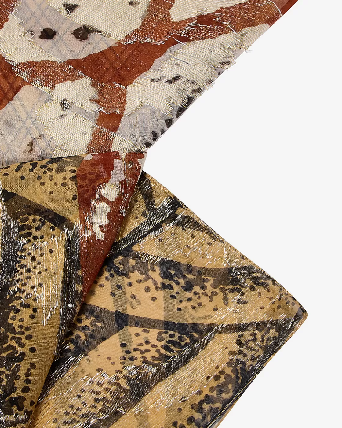 Add a touch of sophistication to your outfit with our magnificent laminated viscose and gold thread scarf. With its gene…