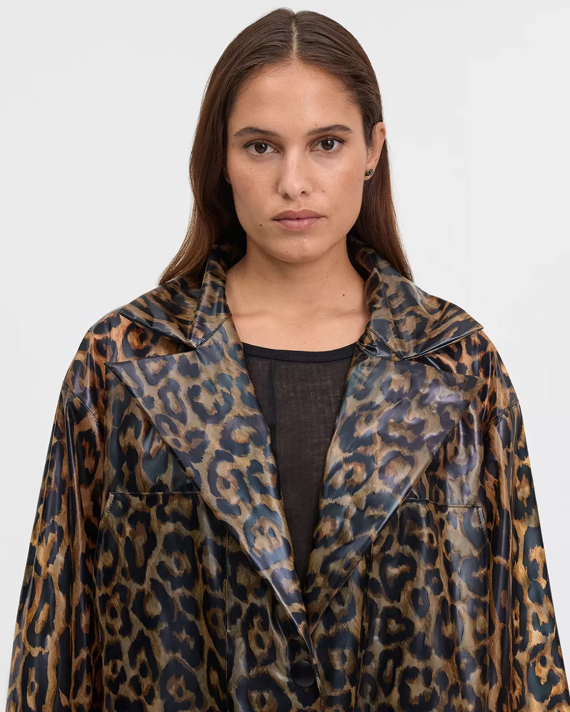 This water-repellent raincoat is both practical and stylish, ideal for facing bad weather with elegance. Its tone-on-tone leopard print adds a touch of wild sophistication to your outfit, while remaining subtle and refined. The straight fit offers a flattering and versatile silhouette, perfect for wearing over any outfit. The snap buttons add a touch of modernity and practicality to the raincoat. Made from water-repellent fabric, it effectively protects you against the rain while remaining breathable and comfortable.