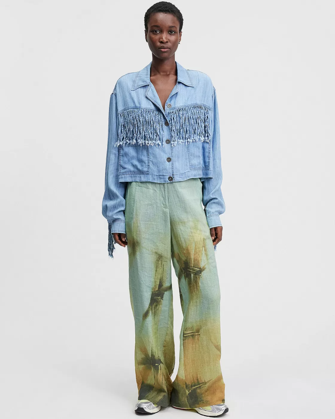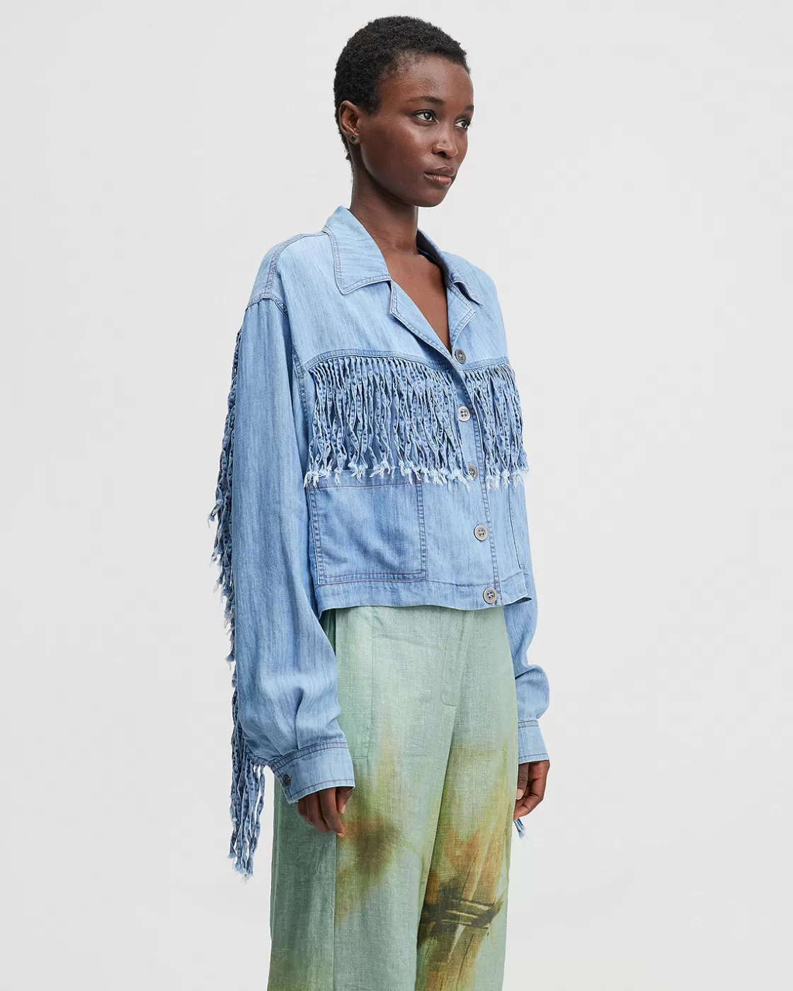 Short rock-style jacket in a lyocell and linen blend, perfectly designed to combine comfort and style.The fringes fallin…