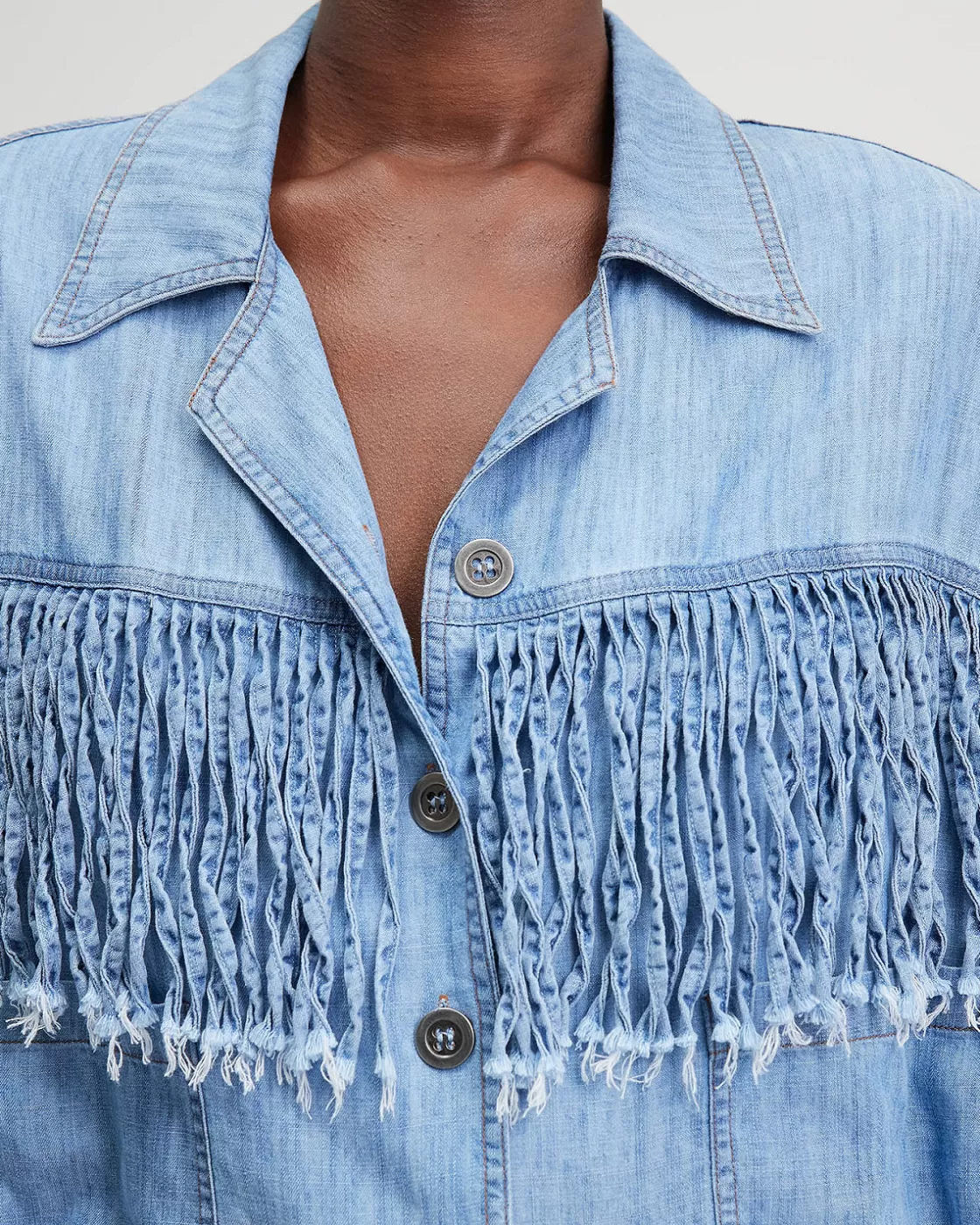 The fringes falling at the chest and back add a touch of originality and dynamism to this piece.