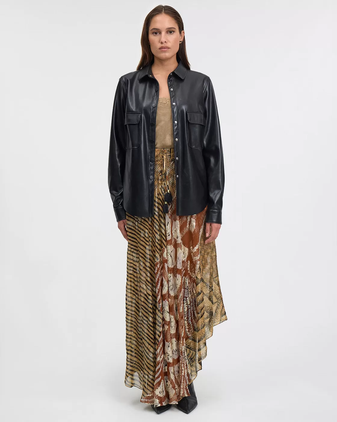 Immerse yourself in originality with our slightly unstructured long skirt, a bold blend of comfort and style. Made from …
