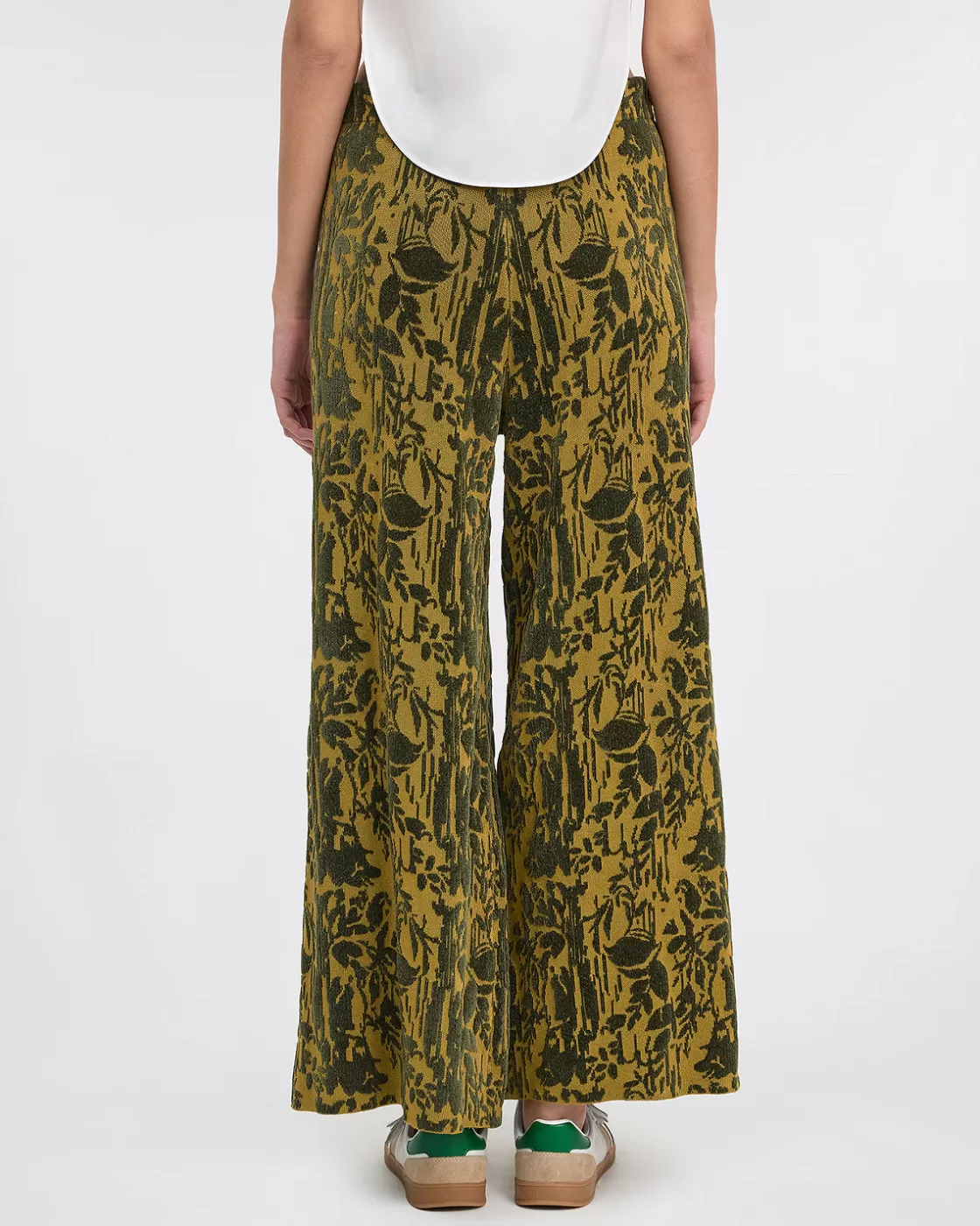 Make a splash with our high-waisted khaki velvet jacquard pants, a chic and trendy piece to add to your wardrobe. The pockets are enhanced by a khaki and navy striped rib, adding a touch of dynamism to these already elegant pants. Its wide cut at the bottom offers a flattering and elegant silhouette, perfect for all occasions. For a coordinated look, wear it with our matching "Banaj" jacket for a complete outfit that won't go unnoticed.