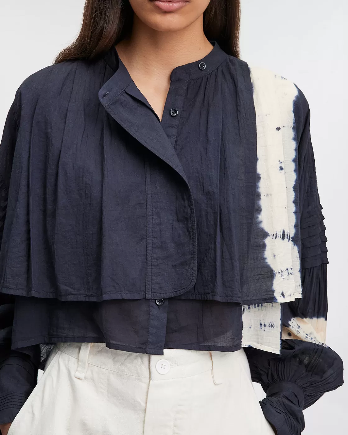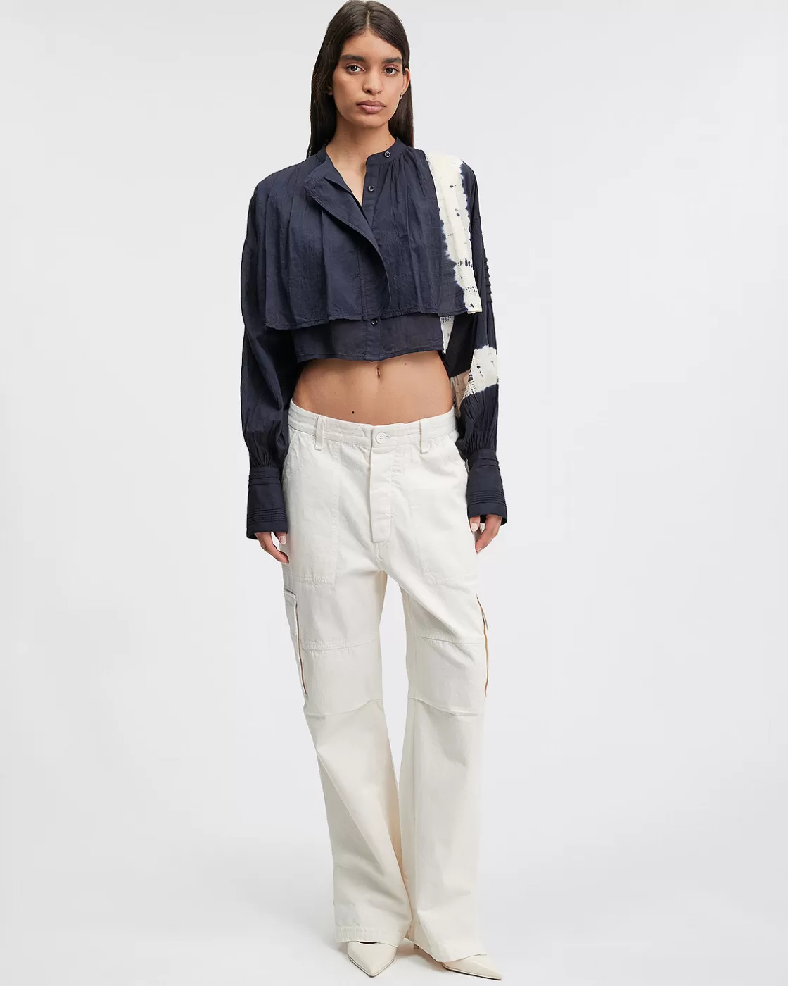 Our short cut black cotton shirt offers a style that is both dynamic and sophisticated.Its double-breasted buttoning and…