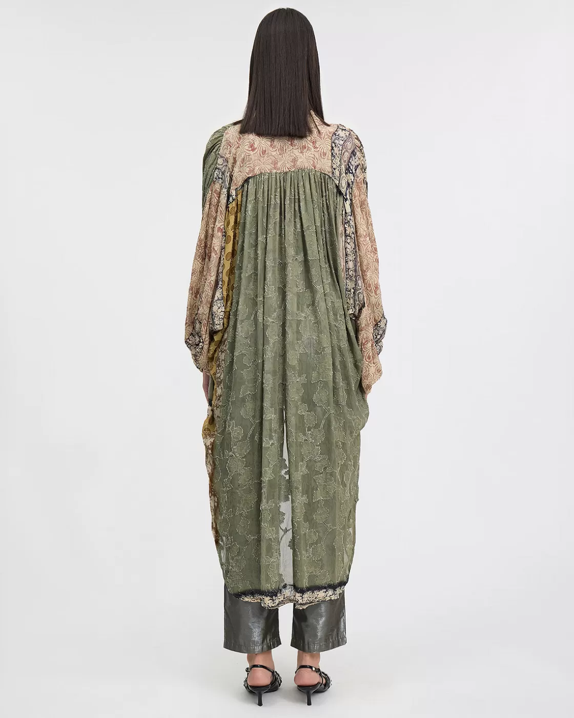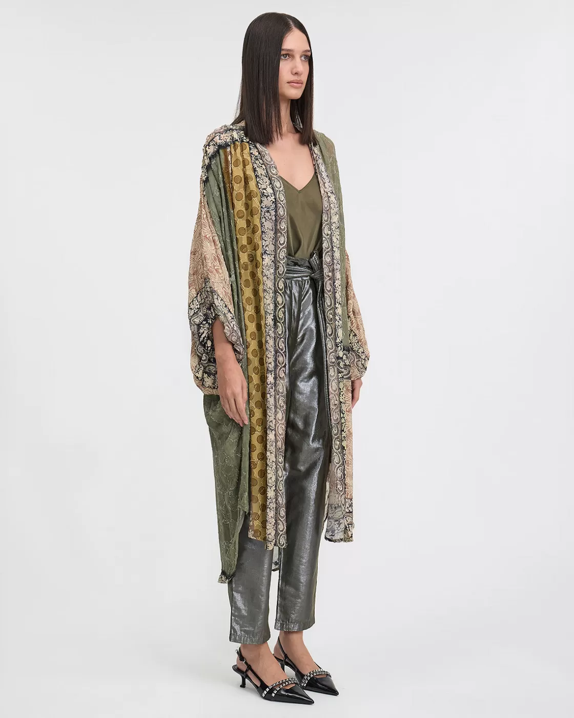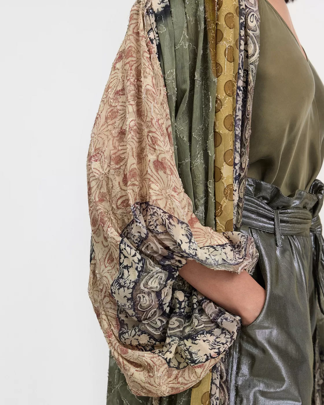 Our straight-cut, yet incredibly supple shirt dress is made from viscose jacquard made from devoré cut yarn. This weaving technique creates a subtle and refined textured pattern. To ensure your comfort and avoid transparency, this dress is lined, allowing you to wear it with complete confidence. The soft sleeves add a touch of ease and fluidity to your movement. The front opening is enhanced by a button placket, adding a touch of elegance and sophistication to this versatile dress or shirt piece.