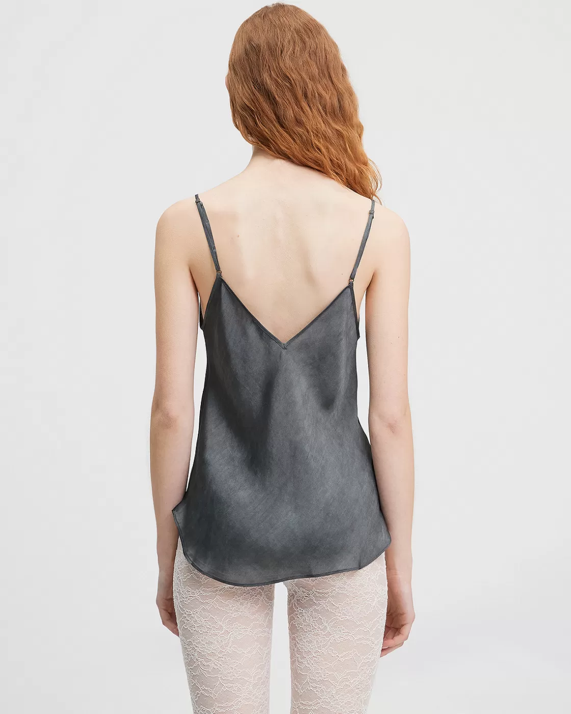 Our faux black silk top is a stylish and versatile wardrobe essential. Featuring adjustable straps for a perfect fit, th…