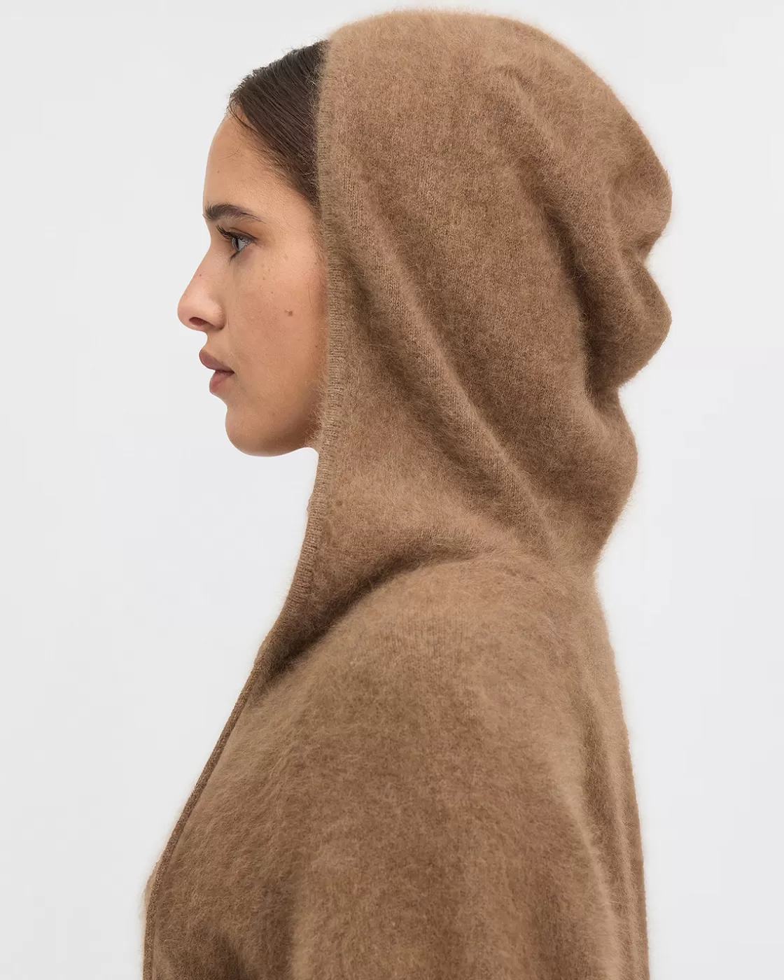 Our refined, lightweight raccoon wool hoodie, in sumptuous brown, offers a sleek, straight fit that's slightly long…